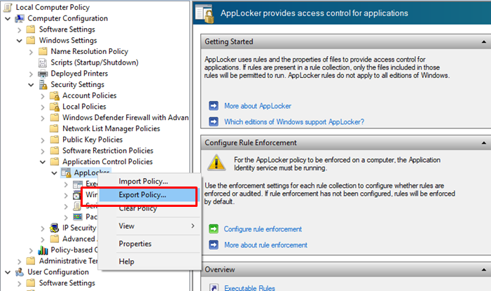 AppLocker is a built-in Windows 10 app that you can use to control a variety of executable file formats, such as exe, Windows Installers, Scripts, Packaged apps, and DLL. For more information, see The Microsoft AppLocker Guide. Before you can change AppLocker settings you must set up AppLocker.