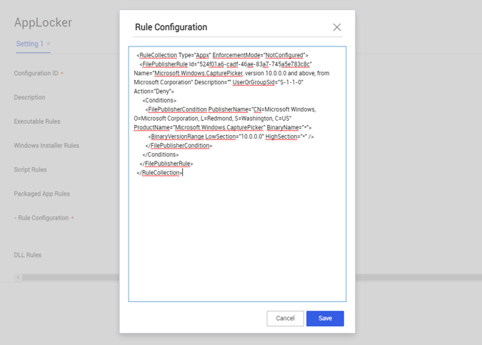 | Configuration ID | Assign a unique ID for each AppLocker setting. |