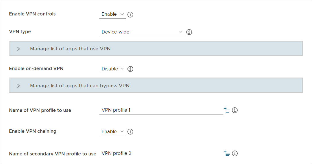 VPN chaining: IT admin can configure two VPN tunnels to double-encrypt traffic.