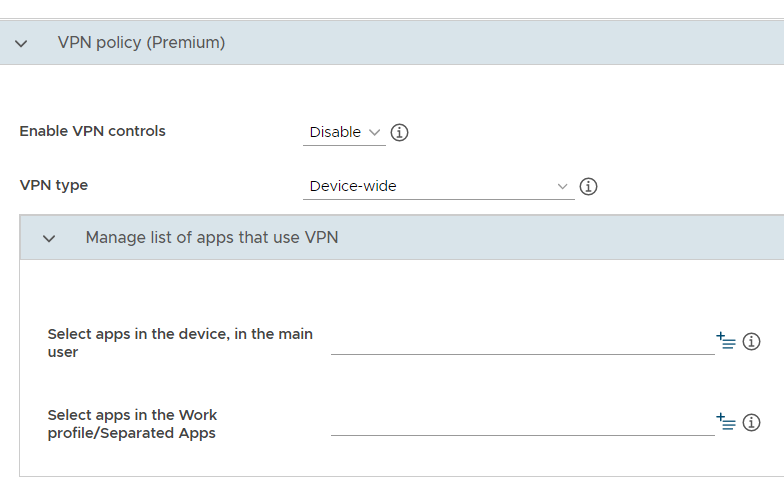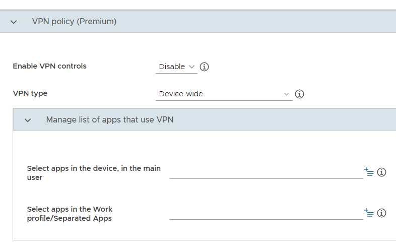 Per-user VPN: The IT admin can configure a VPN tunnel for all apps inside or outside the Separated Apps folder.